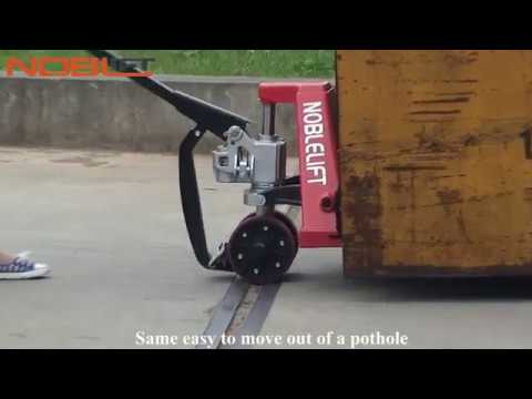 Гидравлическая тележка с механическим приводом, позволяет легко преодолевать препятствия с грузом (пороги, стыки), поднимать груз по рампе, осуществляет удержание груза на рампе при включенной функции Easy Roller